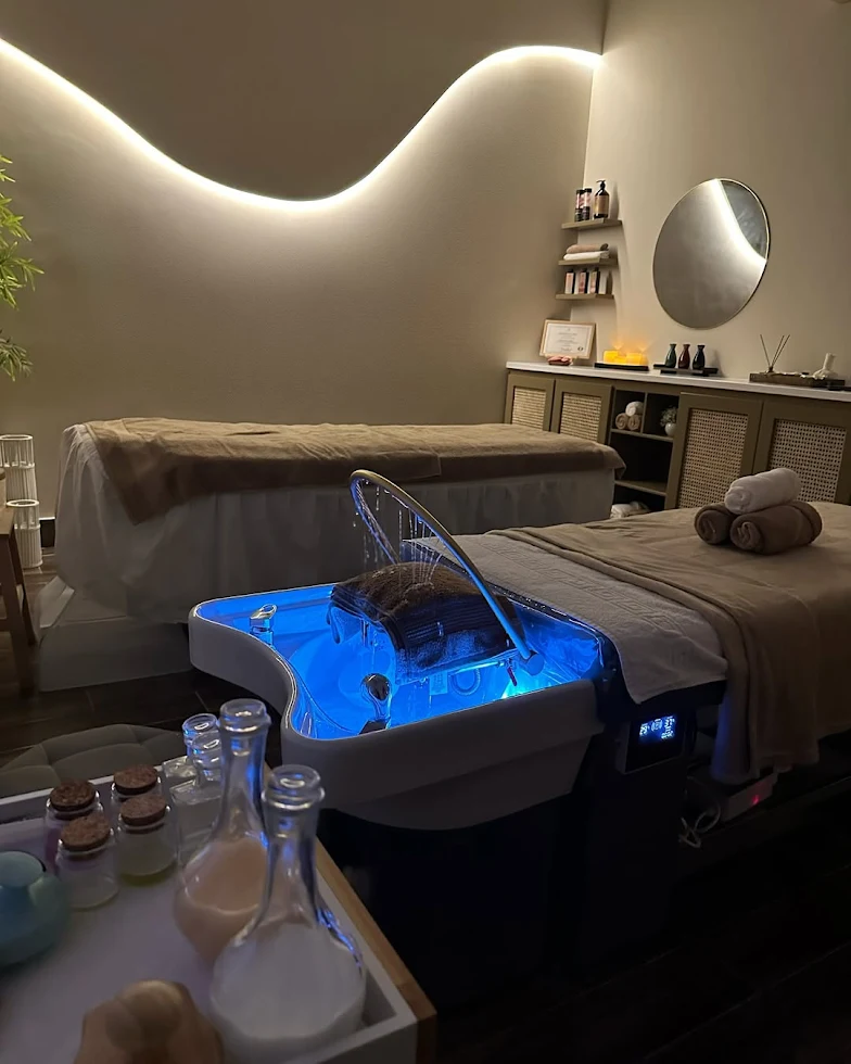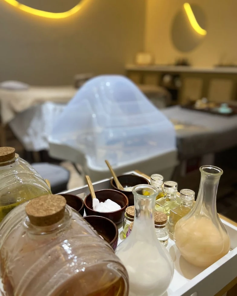 Premium oils and calming spa environment.